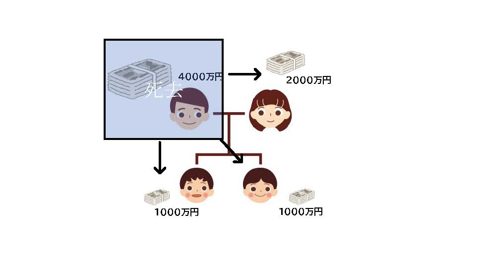 たとえば、父親が4000万円の預金を残して亡くなり、母親、長男、二男の3人が相続人だった場合、父親が遺言書を残していなければ、母親が2分の1、長男と二男がそれぞれ4分の1ずつの相続分をもつことになります。