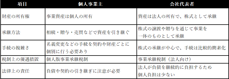 個人事業主と会社の事業承継の違い