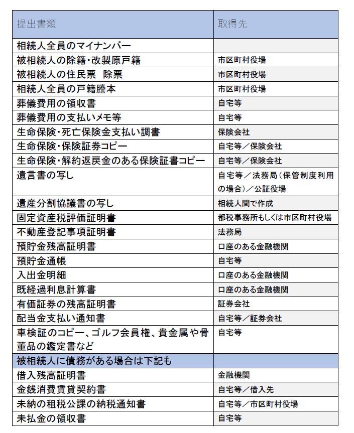 相続税の申告には多くの書類が必要であり、その入手先も、自宅を探す必要があるものや、自治体に問い合わせるもの、金融機関での取得が必要なものなど様々です。さらに、債務がある場合、生命保険に入っていた場合、有価証券を持っていた場合など、人によって必要書類が異なるため、注意が必要です。