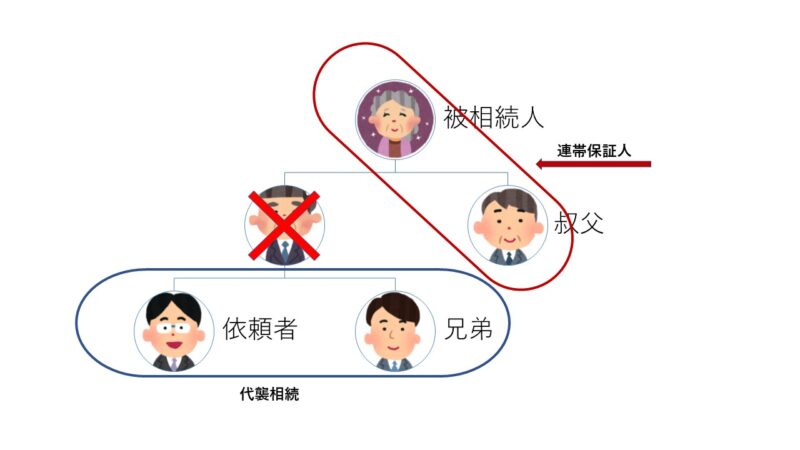 相続人=叔父、兄弟、依頼者。依頼者の祖母が被相続人(代襲相続)
